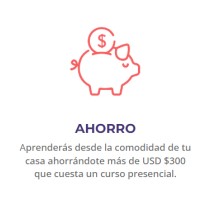 - Te ahorrarás más de USD $200 que te costaría asistir a un curso presencial.